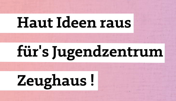 Beteiligungsaktion am Freitag, den 4. August, um 14 Uhr im Jugendzentrum Zeughaus