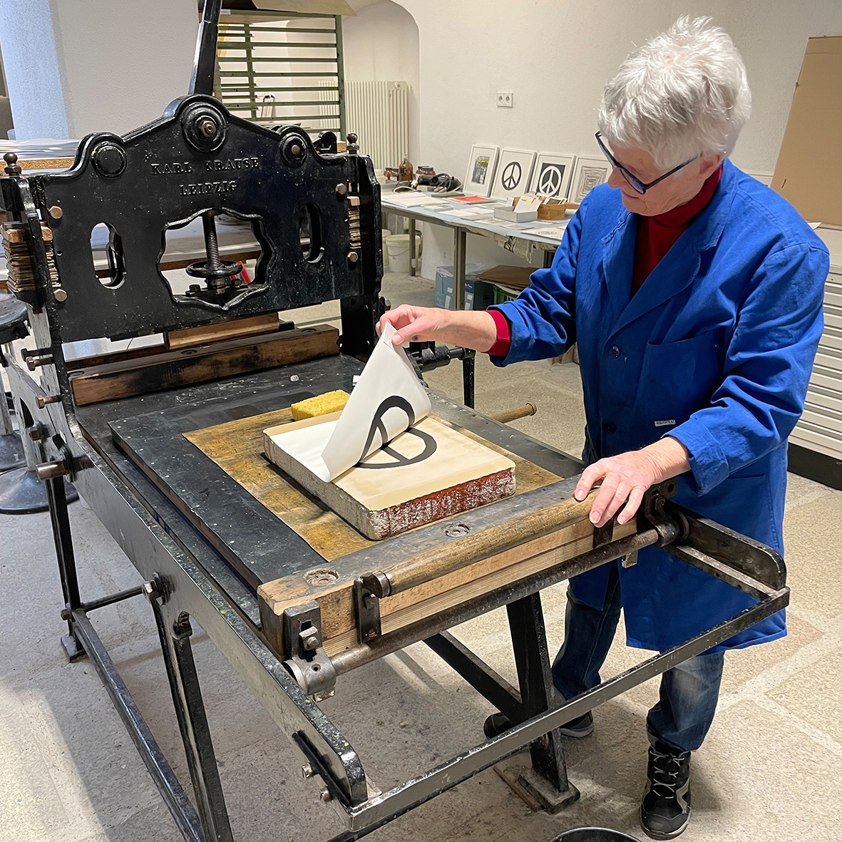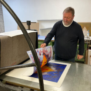 Am Sonntag, dem 15.03., lädt der „Tag der Druckkunst“ außerdem zur offenen Druckwerkstatt ein. Waltraud Danzig arbeitet an der Lithopresse, Hubert Huber an der großen Radierpresse (Monotypien) und Christian Zeitler an der kleinen Radierpresse (experimenteller Druck). Besucherinnen und Besucher können von 11 bis 17 Uhr direkt zuschauen.